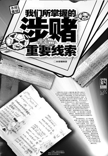 這份線索《遼沈晚報》掌握了3年,為何選擇在此時公諸于眾?對此,郝洪軍說:“3年前,我們3個記者把這份證據(jù)交給了足協(xié),謝亞龍、南勇、楊一民進(jìn)行了接待。也就在2006年初,足協(xié)與公安部聯(lián)手成立打擊賭球活動辦公室。對我們媒體來說,畢竟不是司法機(jī)關(guān),這些線索不能叫證據(jù),交出去(給打擊賭球活動辦公室),是正規(guī)的渠道。但是后來沒有了動靜!