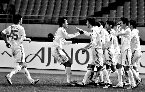 本報(bào)東京訊 (特派記者趙宇)在禁區(qū)內(nèi)連過兩名韓國隊(duì)隊(duì)員,鄧卓翔這樣的表現(xiàn)讓韓國記者目瞪口呆!斑@個(gè)球員叫什么名字?我之前怎么沒見過他?”一位韓國記者很吃驚地說,“能這樣攻破韓國隊(duì)球門的人并不多!