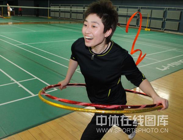 昨天(2日)原本是羽毛球隊(duì)的公開課,但是剛上到五樓便聽見一段火熱的音樂。女雙組的姑娘們正合著音樂利用繩子、呼啦圈等道具作出各種高難度的動作,站在一旁的教練一邊說一邊用手或指揮或示范著。向隊(duì)員打聽后才知道,這教練開始來頭不小——北京奧運(yùn)會藝術(shù)體操銀牌得主隋劍爽。
