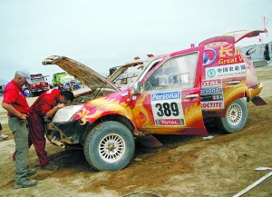 至本報昨天截稿時,中國車手除趙永國退賽外,只有金城摩托車隊的蘇文敏完成了第七賽段的艱苦比賽。而后續(xù)的情況是,汽車組威麟車隊的老將盧寧軍以10小時1分第32個完賽,成為當(dāng)天汽車組中國車手中唯一沒有被罰時的人。其余3位車手因為在組委會關(guān)門時間之后才返回,均被罰12小時。在不計被罰時間的情況下,長城車隊的周勇成績是15小時08分45秒,列賽段第44。老盧的隊友江耀桓用了16小時38分11秒,賽段成績第57。興業(yè)銀行酷車時代的朱金忠用時16小時47分30秒,成績列第58位。