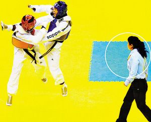 龐海遠出生于1973年,浙江瑞安人。十幾年前她作為浙江女子柔道隊運動員曾勇奪全國冠軍。因傷退役后不久,她便與相戀多年的男友結(jié)了婚,兒子現(xiàn)在9歲。退役后的龐海遠,先后擔(dān)任了柔道和跆拳道教練,世界冠軍吳鈔來、全國冠軍董鳳鳴等都是龐海遠的得意門生。她也是浙江唯一的一位跆拳道國際級裁判。