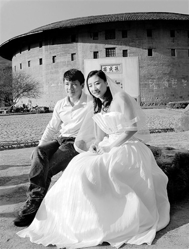 這張疑似婚紗照中,何雯娜身著白色婚紗,而陳一冰上身穿著淺色襯衫,下身的打扮卻很休閑,背景是振成樓。據(jù)何雯娜家人介紹,何雯娜全運(yùn)會后利用假期回到龍巖,為永定拍了這組宣傳照,這也是何雯娜第二次為土樓做宣傳了!霸谂男麄髡掌陂g,何雯娜換穿了不止一套服裝,白色婚紗是最后一套!焙析┠饶赣H介紹說,“和陳一冰拍照是在拍攝結(jié)束后,并不是婚紗照。”