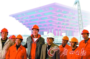 世博會中國館工地 劉翔與父親、教練一同“觸電”