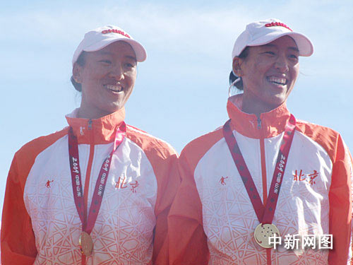 10月19日上午,在山東日照舉行的中國十一運會賽艇賽場上,有一抹靚麗的色彩成為人們津津樂道的話題,那就是來自北京隊的雙胞胎姐妹李彤、李萌,她們姐妹齊心勇奪女子2000米雙人單槳無舵手的金牌。這枚金牌也算是對她們憾別奧運會的一個很好的補償。