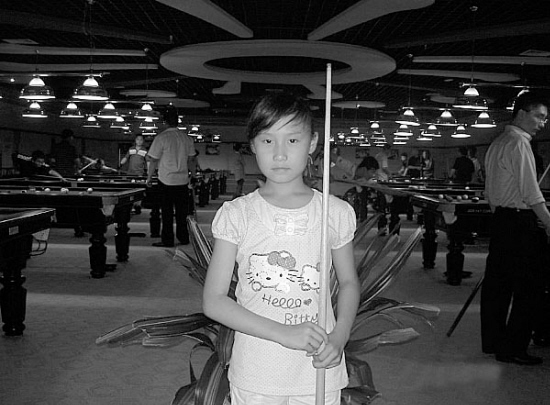 幾個月前,姜克軍在網(wǎng)上無意中發(fā)現(xiàn)了這次女子九球世錦賽的報名消息,“會外賽都是業(yè)余選手參加,打入前八名可以躋身決賽階段,就有機會跟潘曉婷那些世界高手過招,真是個難得的好機會。我跟孩子媽媽商量了好久才告訴姜藤,她聽了挺興奮,很想去沈陽參賽,我們就說只當(dāng)帶她出來見世面,至于比賽成績根本不重要。不過,我的想法是讓女兒走職業(yè)路線,她的自然條件不錯!