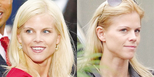 艾琳是一個標準的金發(fā)美女,來自瑞典的她曾經當過模特,容貌可以用光彩照人來形容?墒亲罱囊粡堈掌瑓s顯示,她似乎蒼老了很多。在這張照片中,艾琳露出了少有的笑容。即便如此,她仍然無法掩飾自己的黑眼圈和正在擴張的眼袋。很顯然,老虎伍茲的性丑聞給她造成了太多心理負擔,讓她心力憔悴,才給狗仔隊留下這樣一副“尊容”! ∧ 易