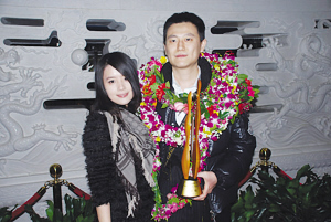 昨日下午,第14屆LG世界棋王賽冠軍孔杰從韓國首爾返回北京,孔杰的媽媽與體育總局棋牌中心主任劉思明、北京棋院副院長譚炎午等領導早早來到機場迎接。女友陳小勻也來到機場,與載譽歸來的男友小秀了一把恩愛。