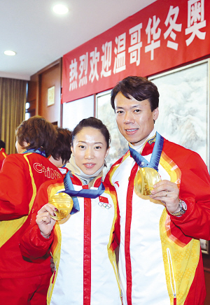 三金王王濛被里三層外三層地圍著向前挪,王濛懷里抱著一個(gè)頭戴白帽的小孩,遭到了閃光燈轟炸,知情者說,那是她的小侄子。趙宏博和申雪摟得緊緊的,“今天的歡迎儀式也讓我們一下子想起了四年前。”申雪說。 (趙晨彥)