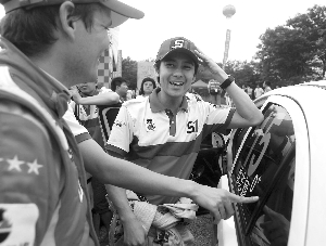韓寒的支持者顯得更加有組織性,在昨天的發(fā)車現(xiàn)場,記者甚至看到了幾位打著“南京寒迷會(huì)”橫幅的帥哥美女,不過韓寒似乎有點(diǎn)不太“合作”,直到發(fā)車儀式即將開始的時(shí)候,才出現(xiàn)在自己的賽車旁,這讓現(xiàn)場的韓迷頗有些失望。