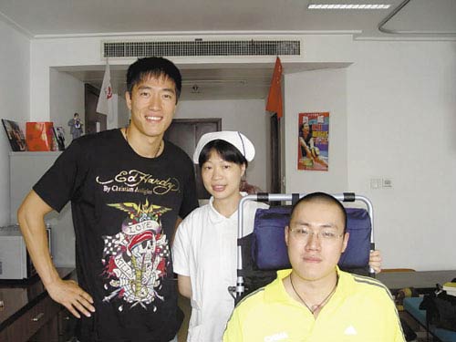 多方打聽(tīng)了解到的情況是,本周四,劉翔穿著黑色T恤,頭戴鴨舌帽,悄悄進(jìn)入醫(yī)院。因?yàn)橥巧虾_\(yùn)動(dòng)員,又是老朋友,劉翔和湯淼聊得很開(kāi)心。劉翔先仔細(xì)了解了湯淼的康復(fù)情況,鼓勵(lì)他積極配合醫(yī)生治療,以爭(zhēng)取好的結(jié)果。劉翔此行相當(dāng)?shù)驼{(diào),只在病房呆了十分鐘就匆匆離去,不過(guò)走之前,他還是滿足了湯淼的主治醫(yī)師、護(hù)士合影留念的要求。