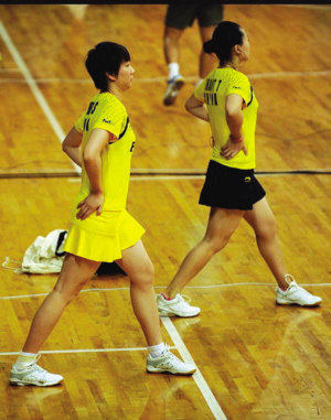 網(wǎng)球場(chǎng)上女選手穿著短裙打球已經(jīng)蔚然成風(fēng),羽毛球場(chǎng)上的美少女們還處于“遮遮掩掩”的狀態(tài),穿裙子比賽的遠(yuǎn)遠(yuǎn)少于穿褲裝的。不過也有勇于“嘗試”的,昨日中國隊(duì)里的女雙組合張亞雯和趙婷婷、成淑和趙蕓蕾都穿上了裙裝——張亞雯、趙婷婷穿的是黑衣紅裙,成淑、趙蕓蕾則是黃色裙子。不知是否是穿著裙裝更利落,兩對(duì)組合都輕松挺進(jìn)女雙八強(qiáng)。