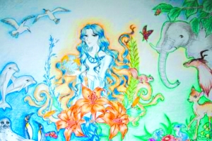 排球美女趙蕊蕊扣球厲害,還畫得一手好畫。在一次北京海洋館舉辦的環(huán)保作品比賽中,她的一幅作品獲得二等獎。趙蕊蕊在博客里公布了這幅作品,她解釋說:“我想表達(dá)的是地球母親手捧地球,左邊是海洋世界,右邊是陸地世界,而她的頭頂是一片天空,因為有了這一切才構(gòu)成和諧統(tǒng)一的世界!