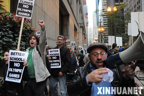 在國際奧委會(huì)兩天后將在丹麥哥本哈根決定2016年夏季奧運(yùn)會(huì)舉辦城市之際,“芝加哥不要奧運(yùn)會(huì)”組織29日召集300多人在芝加哥市政府大樓前舉行示威游行,反對芝加哥申辦奧運(yùn)會(huì),呼吁政府在改善廣大居民的教育、醫(yī)療條件方面進(jìn)行更多的投資。