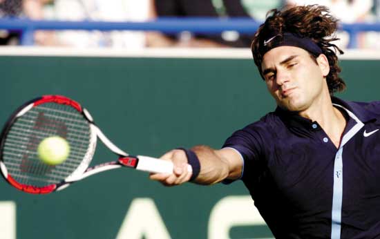 倒霉的2008年過(guò)去了,瑞士球王費(fèi)德勒(上圖)希望在新的一年里有一個(gè)好的開始,但英國(guó)天才穆雷卻又給了他當(dāng)頭一棒。昨天在阿聯(lián)酋阿布扎比進(jìn)行的一場(chǎng)表演賽上,穆雷后來(lái)居上再挫費(fèi)德勒。小天王納達(dá)爾則輕取俄羅斯勞模達(dá)維登科,大顯世界一哥的風(fēng)范。
