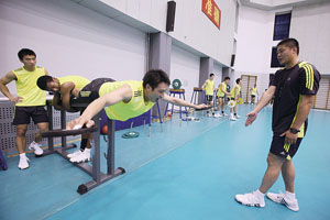 陳豐是中國男排歷史上首位專職體能教練。昨天,男排主帥周建安對(duì)記者表示,之所以設(shè)立這一職務(wù),是因?yàn)閲殷w育總局排球運(yùn)動(dòng)管理中心領(lǐng)導(dǎo)和教練組已經(jīng)意識(shí)到,中國男排要想縮小與世界強(qiáng)隊(duì)的差距,必須從體能上尋找突破口。“北京奧運(yùn)會(huì)結(jié)束后,我們發(fā)現(xiàn)中國男排與世界強(qiáng)隊(duì)身體的差距很大。這雖然不是一兩年能夠解決的,但不能因此就放棄在改進(jìn)體能方面的努力。”周建安說,有了身體素質(zhì)作基礎(chǔ),中國男排才能更加強(qiáng)調(diào)速度,從而實(shí)現(xiàn)快速多變的打法。