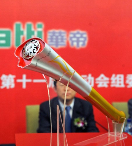 4月28日上午11時(shí),第十一屆全國運(yùn)動(dòng)會(huì)火炬——“如意”在濟(jì)南揭開神秘面紗,首次在公眾面前亮相。