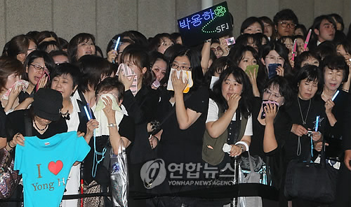 在7月1日位樸龍河開設(shè)的首爾靈堂中,為吊喪而親自來韓的日本粉絲占了相當(dāng)一部分。因此,樸龍河的遺屬方面容許到7月1日下午1時(shí)為止只讓日本粉絲進(jìn)行暫時(shí)的吊喪。吊喪時(shí)4到5人為一批進(jìn)到靈堂。吊喪出來的日本粉絲們都哽咽地從靈堂出來。因?yàn)楦办`堂吊喪的客人比預(yù)想的多了很多,當(dāng)初計(jì)劃在這天下午1點(diǎn)的入殮儀式也推遲到了下午2點(diǎn)。