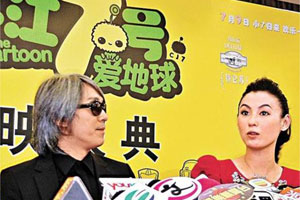 周星馳監(jiān)制的動畫電影《長江7號愛地球》日前在北京舉行記者會,除負(fù)責(zé)幕后配音的徐嬌,有份演唱電影主題曲的張柏芝也以一身火紅色打扮亮相,風(fēng)頭直逼周星馳。Lucas則意外缺席,張柏芝解釋:“他有一個女朋友今天生日,要參加派對!