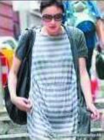 上周四下午3時許,有港媒記者拍到樂基兒頂著32℃高溫現(xiàn)身中環(huán),她一反常態(tài),穿著一件樸素、灰色條文的連身洋裝,搭配平底鞋,然后以龜速小心翼翼走樓梯,小腹明顯微凸,當(dāng)時恰巧微風(fēng)徐徐吹來,樂基兒微微隆起的腹部更加明顯,她雖未發(fā)現(xiàn)媒體跟拍,仍拿出外套遮肚,行徑詭異。