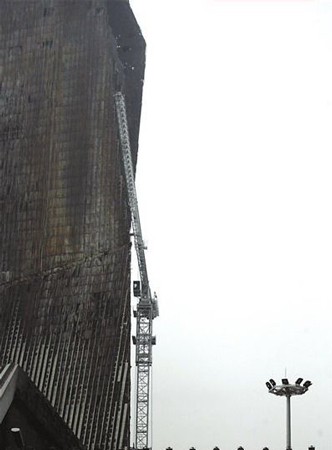 “央視過火樓”將于今日啟動(dòng)復(fù)建工程的第一階段,即拆卸施工階段。記者從該工程總承包單位———北京城建集團(tuán)了解到,今日啟動(dòng)的是金屬幕墻和網(wǎng)架的拆卸。