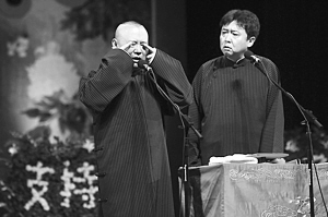 演出在當(dāng)晚7:30左右開場(chǎng),郭德綱和于謙都身穿傳統(tǒng)長(zhǎng)衫出場(chǎng),笑容滿面,開場(chǎng)白是:“感謝在座的衣食父母!比珗(chǎng)掌聲響起。在當(dāng)晚演出中,郭德綱和于謙一共說了四段經(jīng)典作品,并且在觀眾一再要求下,返場(chǎng)了五次。郭德綱一向擅長(zhǎng)拿真實(shí)事件“砸掛”。在返場(chǎng)中,郭德綱就用“保羅”和于謙父親串聯(lián)了起來,讓現(xiàn)場(chǎng)笑聲不止。除了郭德綱和于謙二人的表演,在近3小時(shí)的整場(chǎng)演出中,還有多名弟子上臺(tái)演出,但并無知名度較高的弟子出現(xiàn)。演出結(jié)束后,一群“綱絲”仍舊不愿離場(chǎng),留在門口想與郭德綱合影簽名,并且打出橫幅支持郭德綱。面對(duì)觀眾如此熱情,郭德綱也是感慨道,“我能力有限,就會(huì)說個(gè)相聲,只要大家喜歡,我們就愿意給大家?guī)砜鞓。”?jù)了解,本場(chǎng)演出所有低票價(jià)已經(jīng)在一周之前全部售出,而最高門票也是所剩無幾。在離開場(chǎng)還有一個(gè)鐘頭的時(shí)候,黃牛黨都聚集在售票處,但并不是出售門票,而是收門票。當(dāng)記者向黃牛黨打聽票價(jià)時(shí),得到的回答只有“沒票,你有票賣嗎?”(王少文)