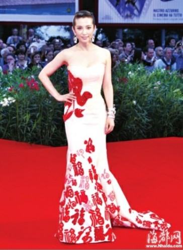 清冷了多日的威尼斯紅毯秀終于因?yàn)椤兜胰式苤ㄌ斓蹏范杆偕郎,影片的主?chuàng)也令華語電影人氣勢(shì)十足。此前,李冰冰要在威尼斯紅毯上穿“青花瓷”禮服的消息被傳得沸沸揚(yáng)揚(yáng),她和范冰冰的“碰瓷”還一度成為熱炒話題。但在昨天的紅地毯上,李冰冰并沒有選擇提前曝光的“青花瓷”,而是選了另一套“百福圖”的戰(zhàn)袍。