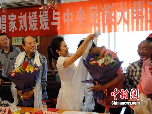 中新網(wǎng)北京9月9日電 (記者 應(yīng)妮)中央民族大學(xué)來自玉樹、舟曲的師生9日與著名歌唱家劉媛媛共度教師節(jié)。