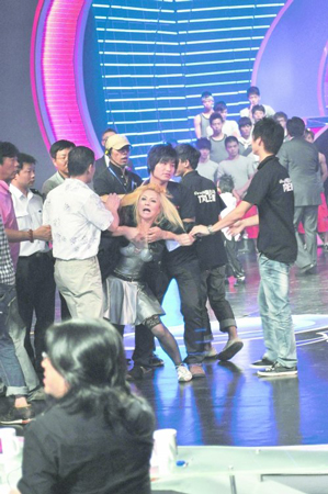 湖南衛(wèi)視的《快樂(lè)男聲》剛剛落下帷幕,東方衛(wèi)視的《中國(guó)達(dá)人秀》即將迎來(lái)高潮。不過(guò),在前日舉行的《中國(guó)達(dá)人秀》首場(chǎng)半決賽中卻發(fā)生了意外狀況,被淘汰的選手陳靜大鬧現(xiàn)場(chǎng),最終周立波動(dòng)用了自己的保鏢才將她和她的丈夫請(qǐng)出舞臺(tái)。而一旁的評(píng)委高曉松說(shuō)了一句“上海男人慫”,也惹得眾多網(wǎng)友不滿。昨日,這段從節(jié)目中刪除的視頻流傳到了網(wǎng)上,成為網(wǎng)友熱議的焦點(diǎn)。對(duì)于選手的偏激行為,昨日《中國(guó)達(dá)人秀》的宣傳總監(jiān)陸偉解釋說(shuō):“陳靜未能晉級(jí)的失望心情我們可以理解,但她在現(xiàn)場(chǎng)選擇這樣的方式來(lái)發(fā)泄,顯得有些過(guò)激,因此在節(jié)目最后公開(kāi)播出的版本中,刪去了這段實(shí)況!