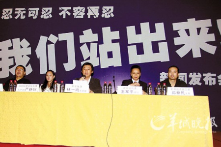 昨天下午,深圳“稻草文化”公司打著“忍無(wú)可忍,不容再忍———我們站出來(lái)”的橫幅召開(kāi)新聞發(fā)布會(huì),表示要“公開(kāi)‘訂金門’事實(shí)真相”。