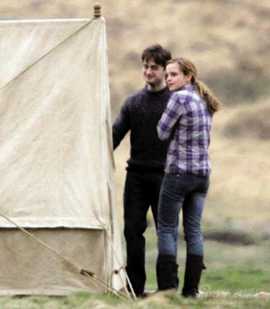 從片場照片以及小說情節(jié)推斷,丹尼爾與艾瑪拍攝的是他們逃亡在外、風(fēng)餐露宿的場面,“羅恩”魯伯特則因?yàn)槟承┰驎簳r(shí)離開了他們!豆げㄌ7》全名為《哈利·波特與死亡圣器》,這一集電影將一分為二,上部于2010年11月19日上映,下部于2011年7月15日上映。