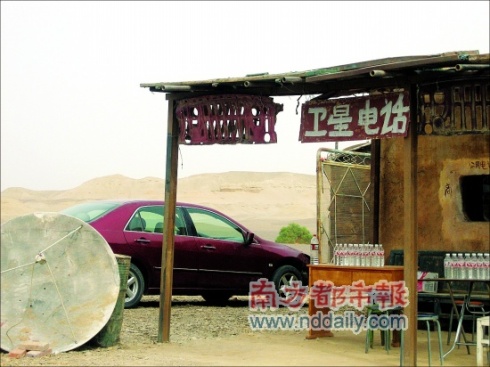 《無(wú)人區(qū)》的外景地是一個(gè)加油站兼小賣店,也做汽車修理生意。雖然這個(gè)外景地才搭建不足幾個(gè)月,但在黃沙狂風(fēng)的洗禮下,已經(jīng)活像一個(gè)存在了幾十年的破爛地方。連小賣店本身也是一個(gè)無(wú)頂?shù)男“,每?dāng)風(fēng)吹過(guò),無(wú)盡的黃沙就朝人的頭頂撒下。