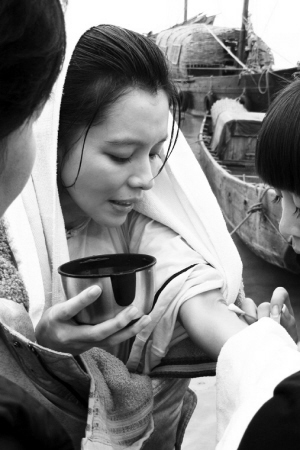 徐若瑄介紹,她扮演的黃蘇英是個(gè)美麗善良,而又堅(jiān)韌不拔的漁家女,看到孩子的同學(xué)不慎掉入水中,她當(dāng)即跳海救人。拍攝當(dāng)天,海邊的天氣十分寒冷,天空下著雨,海風(fēng)很大,導(dǎo)演為她的身體狀況擔(dān)心不已!拔視(huì)游泳,但因?yàn)橐托⊙輪T配合,所以要在海水中一遍遍試戲,很耗體力,后來(lái)我的腿都在抽筋了。”盡管劇組提前準(zhǔn)備了充足的保暖和安全措施,上岸后的徐若王宣仍凍得瑟瑟發(fā)抖,幾盡虛脫狀態(tài),長(zhǎng)時(shí)間無(wú)法緩解過(guò)來(lái)!瘘S笑宇