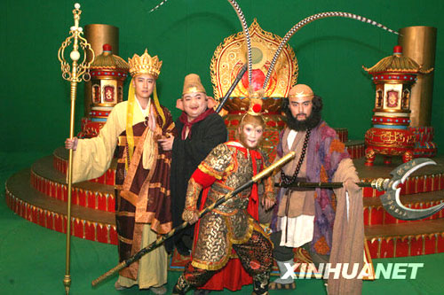 12月30日,唐僧師徒的扮演者亮相。新版電視劇《西游記》目前正在上海車(chē)墩影視基地緊張拍攝,將于2009年2月初攝制完成,暑期上映。新華社發(fā) 朱良城 攝