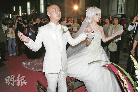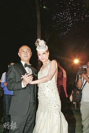 一對新人在酒店筵開18席,現(xiàn)場又大放煙花,歷時5分鐘,在浪漫的環(huán)境下,一對新人忍不住擁抱四目交投,兩度熱吻。結(jié)婚蛋糕共3層,外層的糖衣由粉紅玫瑰和100粒水晶點綴,花了兩日時間制成,價值600元美金,整個婚禮豪花約500萬港元。酒會前一對新人先接受訪問,新郎張衛(wèi)健坦言整個婚禮都十分緊張,還以為自己未讀完誓辭,就跟神父講還未讀完,但神父提他已讀完,余下是新娘子讀,兼且他又擺烏龍幫太太戴錯戒指在右手。張衛(wèi)健說:“以前不信新娘結(jié)婚當天是最漂亮的,原來是真的。”他稱婚后他首要學習如何白頭到老,他更羨慕一對老人家手拖手行街,希望將來都可以做到。