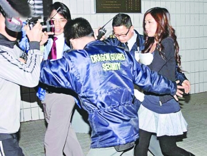 盡管有所準(zhǔn)備,被記者圍攻的張茆仍然有些不知所措。保安人員問(wèn)張茆要到什么地方,她卻呆呆站在一旁沒(méi)有回答,任由記者拍照。保安問(wèn)她要否先到保安室暫避,她立刻回答:“好!”隨后在4名保安的保護(hù)下躲到了校內(nèi)的設(shè)施管理中心,避開(kāi)傳媒的追訪。