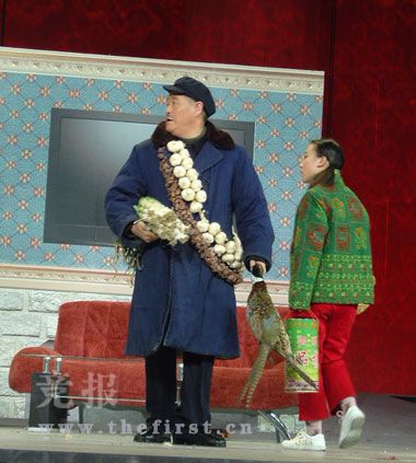 昨日下午,彩排進(jìn)行到3個多小時,觀眾都看疲憊了,穿著藍(lán)色大棉襖的趙本山扛著一辮大蒜,夾著一捆子大蔥就上臺了。他一露面兒,觀眾的興奮勁兒就來了,掌聲響了起來。按本山往常的臺風(fēng),他這時都會沖著觀眾席四周掃視一圈,給大家?guī)讉“憨笑”,但昨天卻突發(fā)意外,本山的咳嗽聲不絕于耳,隨即,觀眾的掌聲戛然而止。趙本山繼續(xù)說臺詞,起先還有觀眾誤以為咳嗽也是趙本山設(shè)計的包袱,但是大家馬上看出來趙本山是真生病了。