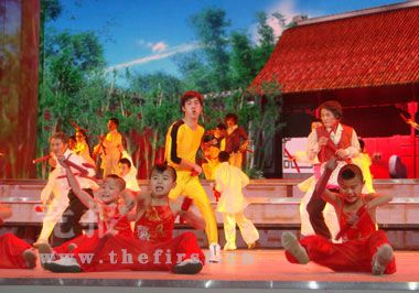 很多大腕在春晚第4場彩排前人仰馬翻地敗下陣來,卻有一群不知名的孩子被增加戲份,他們就是曾在去年奧運(yùn)會開閉幕式上挑過大梁的河南少林塔溝武校的孩子們。這次他們不僅和飾演李小龍的陳國坤合演武術(shù)喜劇《功夫世家》,還臨時被春晚導(dǎo)演組借調(diào)到開場歌舞里撐臺面兒!豆Ψ蚴兰摇返男⊙輪T最小的6歲,即使陳國坤拿雙截棍亮相,用拳和腿分別擊開兩塊木板,也不如這十幾個會功夫的小娃娃奪目。據(jù)說這支隊伍在去年奧運(yùn)會開閉幕式和殘奧會開閉幕式上共表演了5個節(jié)目:《自然》和《夢想》、《彈跳龍》等。記者 郭慕華