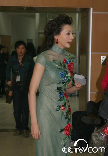 前幾次彩排,主持人一套衣服“一穿到底”,為了給除夕那天直播做準(zhǔn)備,今天以兩身衣服出鏡。董卿一開場以一套大紅色的露肩禮服出場,戴著一對兒紅色的長型耳環(huán),半場過后換成一條橄欖綠色的旗袍式長裙。兩身衣服都有中式的韻味在里面,喜慶之余顯得端莊親切。主持人朱軍準(zhǔn)備了一身黑色的西裝和一身金色的禮服。周濤由一身紅色的拖裙換成了一身藍(lán)色的禮服。據(jù)了解,在正式直播那天,主持人每人會(huì)換三身衣服,這次只是做個(gè)演習(xí)。