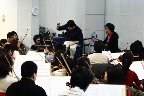 中新網(wǎng)1月23日電 1月22日,由國家大劇院和鳳凰衛(wèi)視聯(lián)合主辦,將于農(nóng)歷大年二十九(1月24日)正式上演的“龍鳳呈祥——全球華人新春音樂盛典”進入倒計時。突如其來的寒潮阻擋不了藝術(shù)家們的熱情,為了能夠在春節(jié)前夕為全球各地的華人同胞奉上一頓豐盛的音樂饕餮盛宴,一大早,中國愛樂樂團的成員們便陸續(xù)拎著樂器箱趕到了排練現(xiàn)場,原生態(tài)超高音歌唱家高保利、被譽為“千面老旦”的京劇藝術(shù)家袁慧琴、有“中國女版郎朗”之稱的鋼琴新秀王羽佳、“當(dāng)代最杰出及最受歡迎的胡琴全才”姜克美等多位演出名錄上的音樂家也風(fēng)塵仆仆的趕來,藝術(shù)家們齊聚一堂,分別演練了自己為這次全球華人音樂盛典精心挑選的曲目。