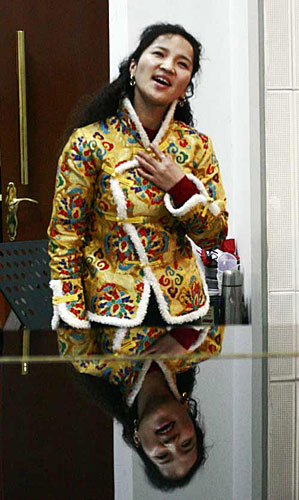 上午還在四川慰問演出的阿斯根,中午就飛回北京,直接趕到中國愛樂樂團排練廳參加“龍鳳呈祥——全球華人音樂盛典2009”的排演。盡管有些暈機癥狀,一聽到音樂響起,阿斯根就振奮得像換了一個人。