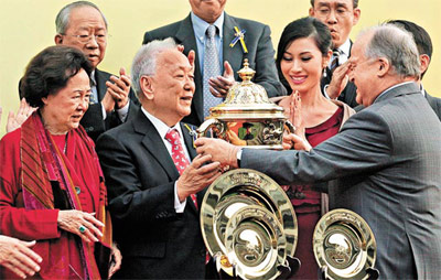 此外,身為亨亨前岳父的賭王何鴻燊,昨日巧合地現(xiàn)身馬場,與嘉欣撞到。問賭王是否覺得嘉欣肚凸似有喜?他風(fēng)趣地說:“不知道是不是(有孕)嘍!我不會(huì)望女仔的肚子!