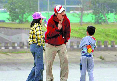 中新網(wǎng)2月9日電 據(jù)臺灣《蘋果日報》報道,伊能靜與黃維德爆牽手情后,讓“伊哈”婚姻亮紅燈,哈林(庾澄慶)始終保持沉默,事發(fā)后首度返臺的伊能靜昨早匆匆離臺,昨下午2時30分,哈林則趁著開學(xué)前帶兒子哈利到大佳河濱公園玩單杠、爬樹,看起來心情不錯,但當(dāng)記者上前訪問,他馬上翻臉、語氣低沉表示:“我不接受訪問!”