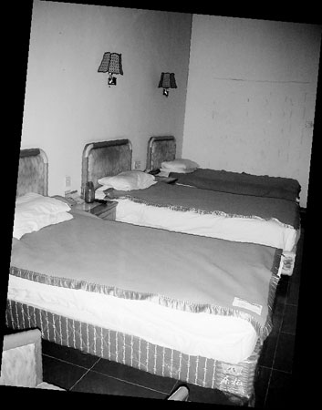 小劉領著記者走到二樓商務套房區(qū),“A區(qū)一共有18個房間,當時劇組都包了,成龍一個人就包了其中4間。一間專門用來擺放他的健身器材,他天天都要健身。”記者走進了A區(qū)一間朝南的套房,客廳里擺放著一套皮質柔軟的組合沙發(fā),臥室里的床超大,拉開陽臺的落地門,還能看到秦王宮和夢幻谷的風景。記者到前臺打聽了一下,這間套房的景觀最好,標價為1380元,明星入住的話,一般都會打個折,800元左右。見習記者 王金帥 通訊員 李肖肖