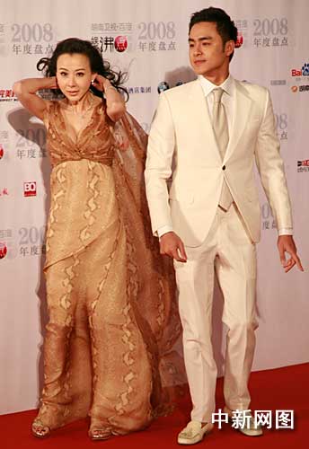 中新網(wǎng)2月19日電 第二屆湖南衛(wèi)視•百度娛樂沸點(diǎn)2008年度盤點(diǎn)典禮今晚在國家游泳中心水立方舉行,當(dāng)日氣溫零度以下,到場走室外紅地毯的各路明星“要風(fēng)度不要溫度”,個個“凍并美麗著”,讓在場的粉絲和媒體欽佩不已。(張?jiān)征霐z)