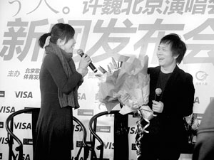 歌手許巍將于4月10日在北京工人體育館舉行個人演唱會——“今天”,這一消息昨日在京發(fā)布。好友——歌手葉蓓手捧鮮花抵達(dá)發(fā)布會現(xiàn)場道賀。
