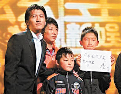 霆鋒多年來一直資助50名內(nèi)地失學(xué)兒童,前晚大會安排頒獎給霆鋒的5名兒童,皆來自四川地震災(zāi)區(qū)都江堰,且全是由霆鋒資助上學(xué)。近一年來備受家事困擾的霆鋒,首次見到自己捐助的小孩,頓時百感交集,他緊緊地抱住這些小朋友,然后眼濕濕哽咽說:“每當(dāng)我拍戲受傷或者心情低落時,我就會想自己不能倒下,可能有50個家庭靠我給他們一頓飯吃。因為認(rèn)識了他們,我才知道自己有多幸運,同樣是黃種人,為什么謝霆鋒可以追逐自己的夢想,他們卻沒有這個機會。”最后他更鼓勵小朋友說:“叔叔不怕痛和累,你們也不能放棄。”