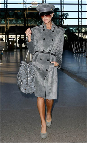 你雷死我了!許久不見(jiàn)的維多利亞·貝克漢姆,一出現(xiàn)就把我們雷了個(gè)人仰馬翻。3月5日的維多利亞身穿這身高級(jí)女軍官裝扮走出了機(jī)場(chǎng),軍官大衣勉強(qiáng)可以用帥氣來(lái)形容,但是這頂帽子。。。真的是無(wú)語(yǔ)配上維多利亞的黑面還有那個(gè)不搭調(diào)的花瓣書(shū)包,維多利亞就算想體現(xiàn)自己的女王氣質(zhì),但是也不用這樣吧,就算今年軍裝樣式的外衣還是流行,可是也不能配上這樣的帽子。這樣走在路上還是T型臺(tái)啊。