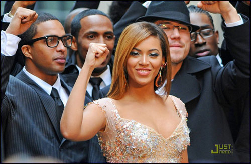 27歲的性感天后碧昂斯3月8日在紐約街頭身穿閃亮低胸性感禮服亮相,為自己的世界巡回演唱會(huì)拍攝特別版MTV,從照片中我們可以看出碧昂斯身后跟著無(wú)數(shù)西裝革履的男士們,我們很期待看到這個(gè)MV的精彩內(nèi)容,下面我們先看看照片吧。