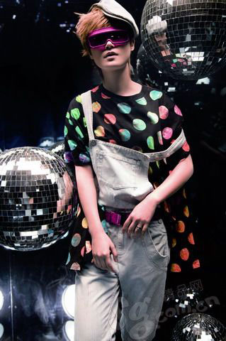 復古的條紋西服借鑒了Tuxdo的元素,像踏著鼓點、漫不經(jīng)心的爵士舞伶;不規(guī)則的圓點襯衫搭配金屬太陽鏡,轉眼間搖身一變成了Disco舞場里的搶眼明星;簡單的T恤與緊質的運動褲,則仿佛小巷里熱愛復古舞步的搖擺小青年。