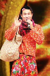 無(wú)獨(dú)有偶,小沈陽(yáng)本月7日晚在北京也上演過(guò)一場(chǎng)“假鬧”。當(dāng)時(shí),小沈陽(yáng)身披袈裟扮演唐僧,和妻子沈春陽(yáng)扮演的女兒國(guó)國(guó)王在臺(tái)上打情罵俏,極盡搞怪搞笑之能事。演出中途,有個(gè)身穿黑衣白褲的女“粉絲”沖上舞臺(tái)強(qiáng)吻小沈陽(yáng),突然,女“粉絲”的假發(fā)套脫落,原來(lái)是男扮女裝的小沈陽(yáng)同門(mén)師兄弟小龍。這又是一起故意制造的娛樂(lè)噱頭。